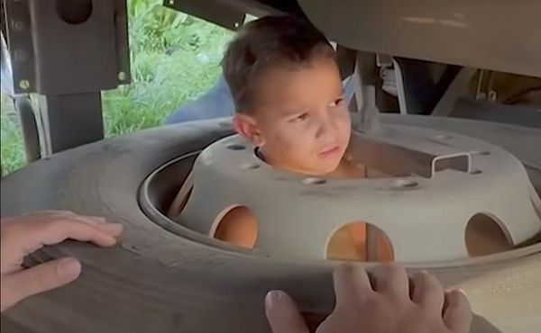Menino de 4 anos é resgatado após ficar preso em roda de carreta