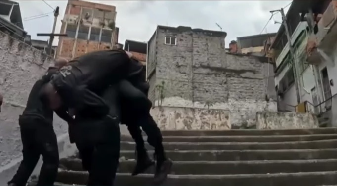 Um vídeo que mostra Bernardo sendo socorrido pelos colegas após ser baleado pelos traficantes circula nas redes sociais. >