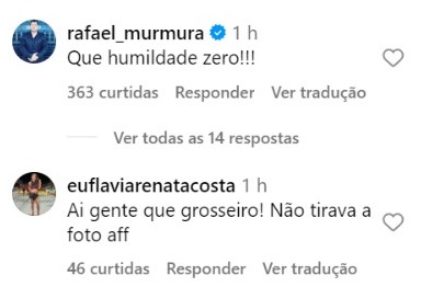 'Que humildade zero!!!', escreveu um internauta. 'Ai gente que grosseiro! Não tirava a foto aff', ressaltou uma torcedora.>